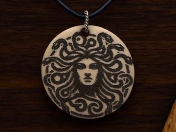 Featuring a detailed Medusa head framed by a classic Greek design. The precision of laser engraving brings out sharp contrasts and fine detail, giving this myth-inspired piece a modern edge.