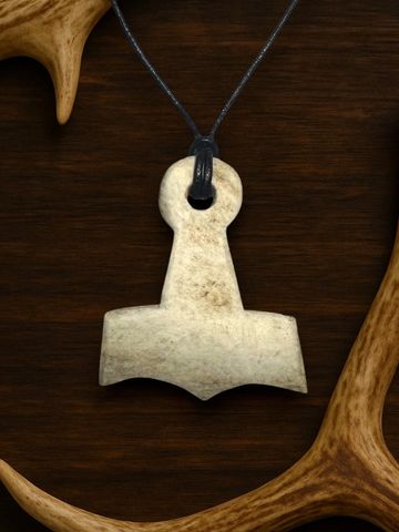 This minimalist Mjölnir pendant is carved from naturally shed deer antler, honoring the Norse god Thor with raw, organic power.